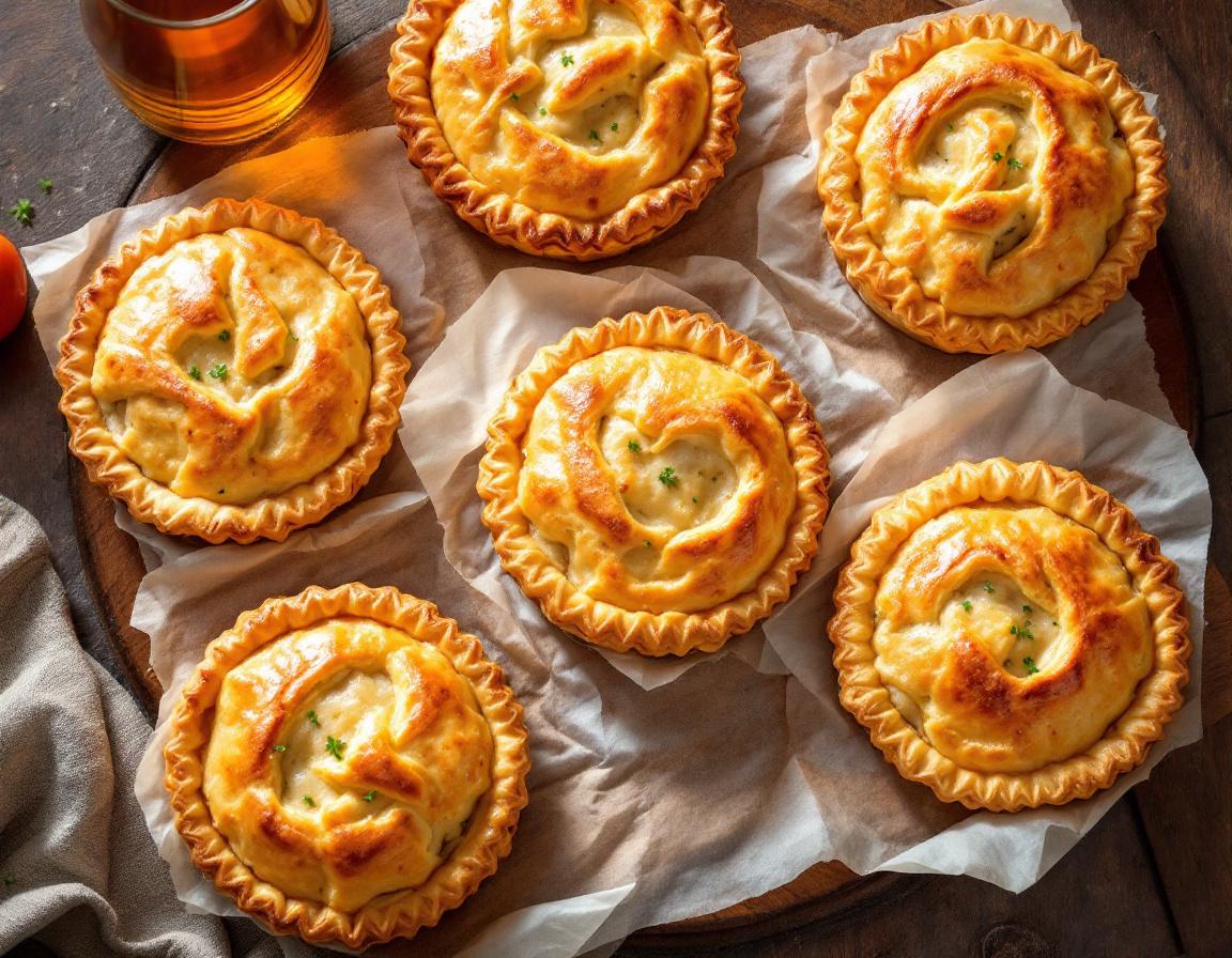 Круглые пирожки с курицей и картофелем в нежном тесте.